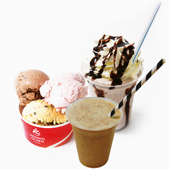 Våre smaker: Oreo, Cookie Dough, jordbær, pistasj, brownie, cappucino, banan/sjokolade, vanilje Nonstop